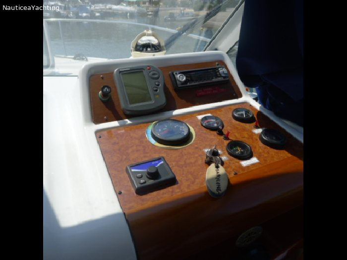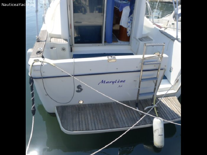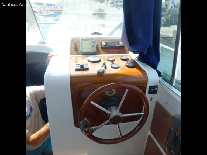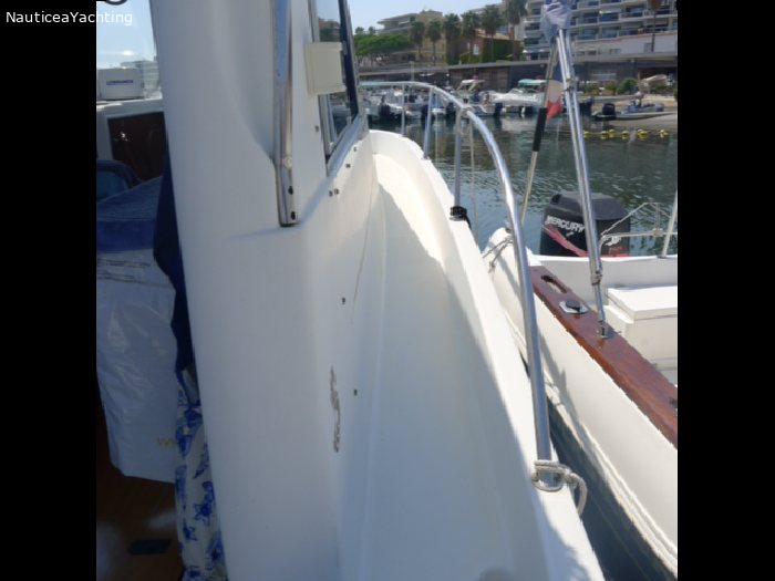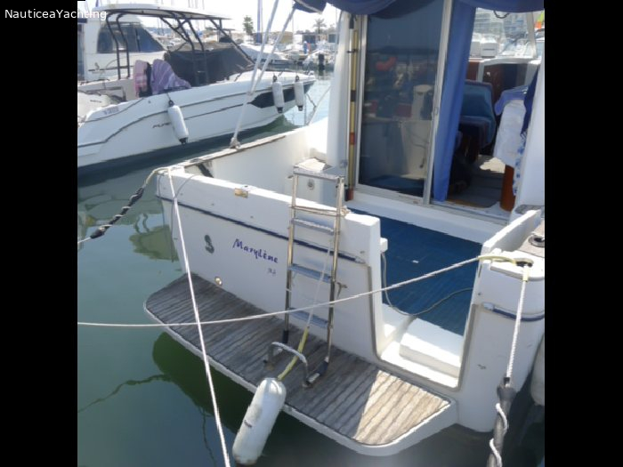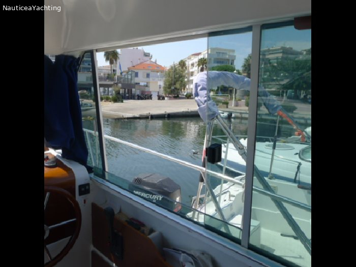 Spécifications : Catégorie -1 Equipements : Pilot automatique Couchette supplémentaire dans le carré central. Deux grandes fenêtres a babord et tribord Sellerie en très bon état. Haut-parleurs ext. Douche extérieure Guindeau Electrique Ancre Bimini et taud d'hivernage. Prise de quai Très bel Antares 760 en parfait état et très bien entretenu. Moteur Volvo D3 remplacé en 2008 Sortie en ligne d'arbreMarque moteur: Volvo