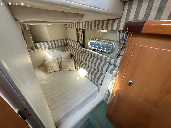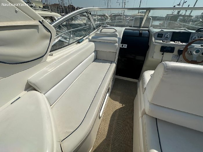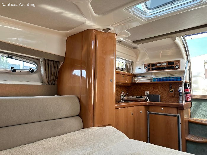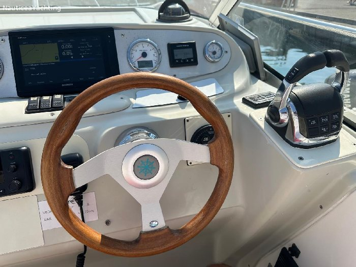 Spécifications : Catégorie -1 Réservoir eau 200 Hélices Inox 2020 Flaps 2015 Equipements : AIS Hélices remplcées en 2020 Flaps en 2015 Capteur et verins de trim en 2025 Eau chaude WC électrique neuf Cabine propriétaire refaite en 2023 Haut-parleurs ext. Douche extérieure Guindeau Electrique Ancre Coque sablée en 2024 Plage arrière ralongée Flexiteak Balcon remplacé en 2020 Sellerie et toit ouvrant en très bon état Superbe Sealine S28 Bolero Etat irréprochable. Moteur remplacé en 2014 avec commandes électriques Très bien équipé et entretenuMarque moteur: Volvo